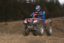 Neu an der TRX 680 sind auch die beiden vorderen hydraulischen Scheibenbremsen statt der bisher verwendeten Trommelbremsen. Dickere Bremsklötze sorgen für eine erhöhte Lebensdauer. Eine Überarbeitung haben auch die Stoßdämpfer genossen. Wir sind gespannt auf den (Dreck-) Track-Test. Sehr positiv haben wir die Federung der Vorgängerin nämlich in Erinnerung. Und noch zwei wesentliche Neuigkeiten gibt es. Die TRX 680 lässt sich jetzt mit eingelegtem Gang starten und die Motorbremse soll in ihrer Wirkungsweise verbessert worden sein. Na dann los!